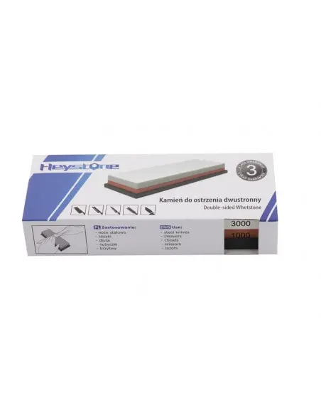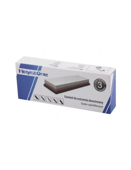 Ascuțitorul de piatră cu două fețe este destinat ascuțirii tuturor tipurilor de cuțite de bucătărie, articole de exterior, cuțite de buzunar, machete și multe altele. Suprafața largă abrazivă a pietrei asigură o potrivire adecvată pentru fiecare dimensiune a lamei. Suportul este din cauciuc, previne alunecarea. Gradarea # 1000 este utilizată pentru a netezi marginea de tăiere, este foarte potrivită pentru ascuțirea cuțitelor de zi cu zi, gradația # 3000 vă permite să finalizați procesul de ascuțire și să oferiți lamei o claritate perfectă. DATE TEHNICE: Model: H3010 Material abraziv: corindon Gradație: 1000/3000 Dimensiuni: 180 x 62 x 30 mm Greutate: 680 g Producător: Heystone COO (țara de origine): RPC INSTRUCTIUNI DE FOLOSIRE: Înmuiați piatra în apă sau folosiți un ulei pentru ascuțit. Așezați ascuțitorul pe o suprafață plană. Pentru a ascuți cuțitul, glisați o parte a cuțitului (cu o presiune ușoară pe el) peste piatră. Când ascuțiți cuțitul, încercați să mențineți unghiul adecvat al cuțitului (15 ° -30 °). Pentru a menține unghiul corect de ascuțire, vă recomandăm utilizarea ghidului T1091AC. Pentru a preveni alunecarea pietrei, vă recomandăm suportul pentru piatră T0961R.