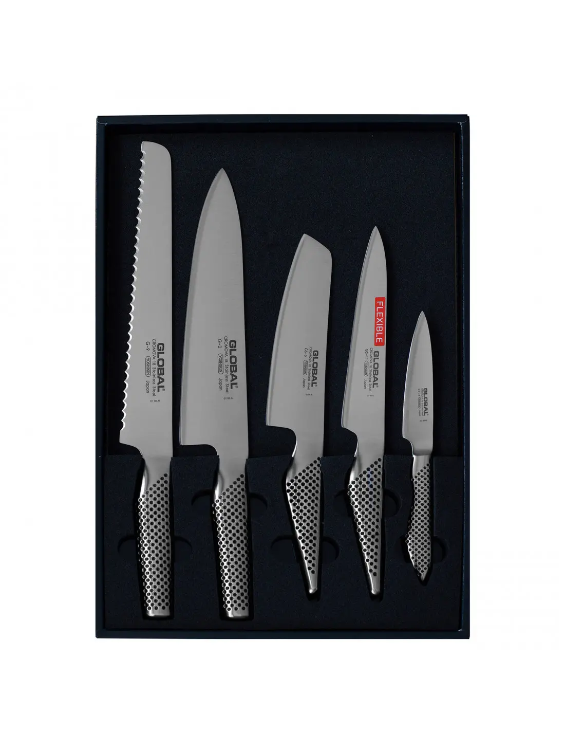 Setul practic de cuțite Global este o bază excelentă pentru o colecție individuală de bucătărie, va umple perfect orice bucătărie, oferind toate cuțitele necesare pentru munca de zi cu zi.