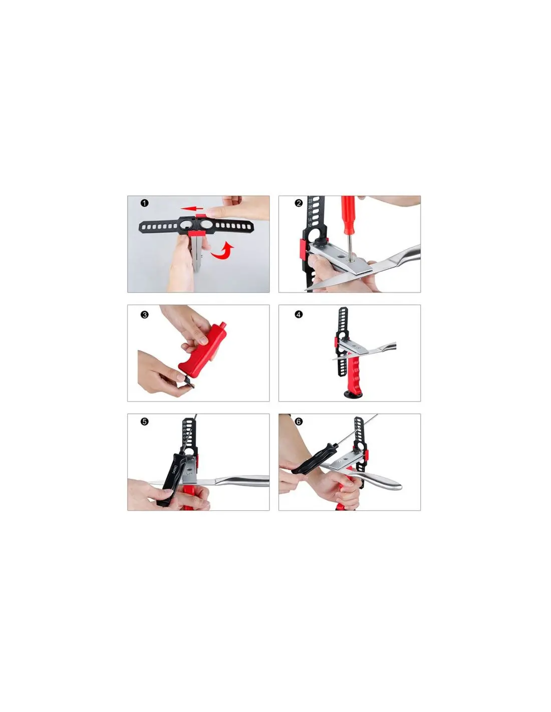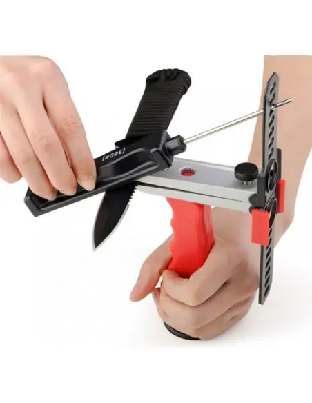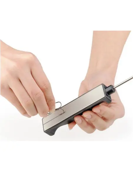 Ascuțitorul a fost realizat în întregime din oțel inoxidabil lustruit.Are niște plăcuțe de cauciuc pentru a împiedica alunecarea dispozitivului.Designul unic al roților ascuțite garantează efectele profesionale de ascuțire.Forma ergonomică asigură confort și siguranță în timpul utilizării.Produsul este destinat pentru ascuțirea tuturor cuțitelor din oțel...